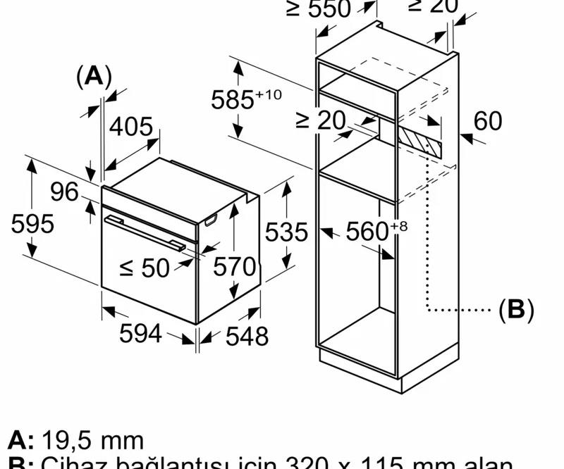 • Ürün Ölçüleri (Yükseklik x Genişlik x Derinlik) 595x594x548 mm